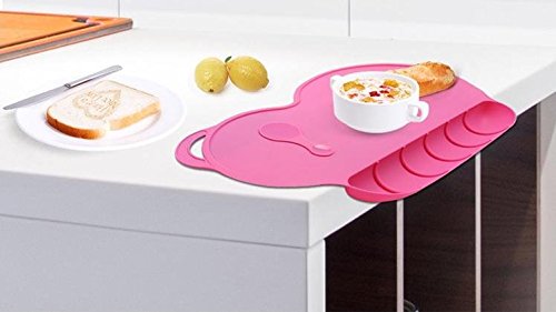 (UN ANANAS) シリコン マット ベビー キッズ 食べこぼしキャッチ ポケット お食事マット 離乳食 撥水 丸洗い(ライトピンク)