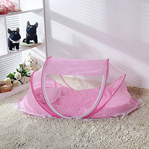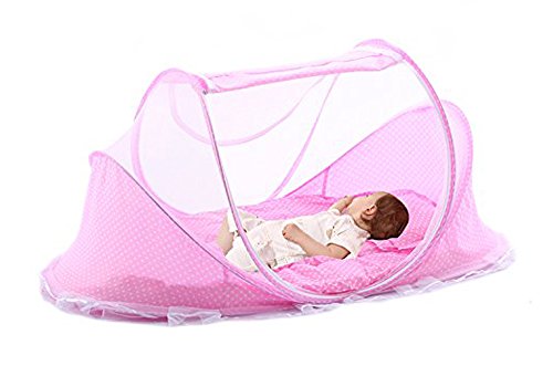 UNEW ベビー用蚊帳/折りたたみ式蚊帳/りたたみ式蚊帳/子供用ワンタッチ蚊帳 キッズ/ムカデや蚊 対策に/ベビー コンパクト/収納 折りたたみ (ピンク)