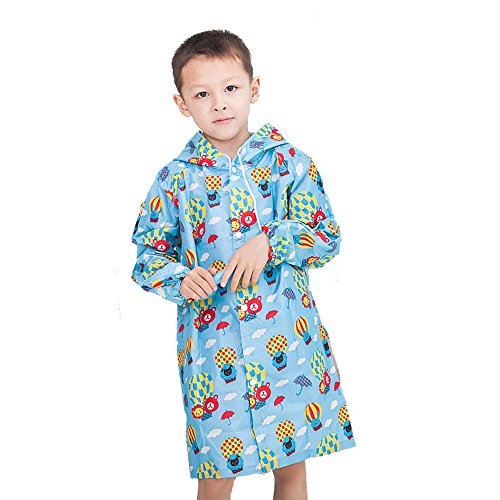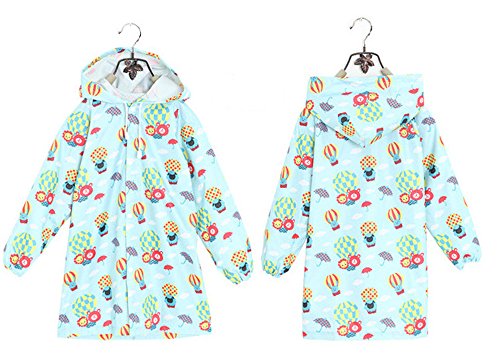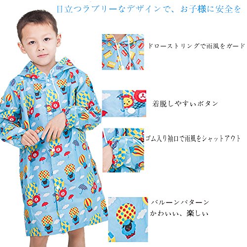 レインコート キッズ 子供 男の子 女の子 レインウェア 可愛 はっ水加工 小学生 低学年 雨具 (ブルー 気球, L)