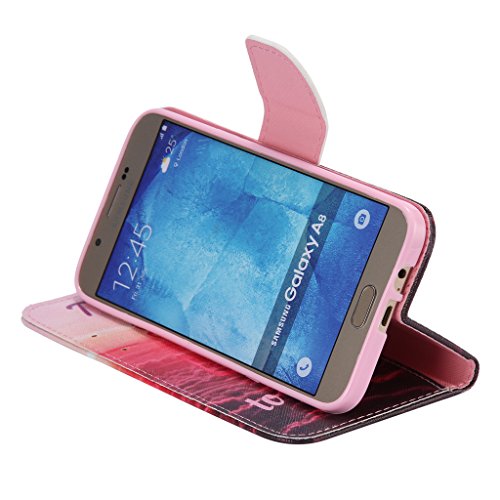 UNEXTATI Galaxy A8 ケース 高級 合皮レザー 手帳型 ケース カバー カードホルダー スタンド マグネット開閉式 付き Samsung Galaxy A8 ケース Case (P9 レッド)