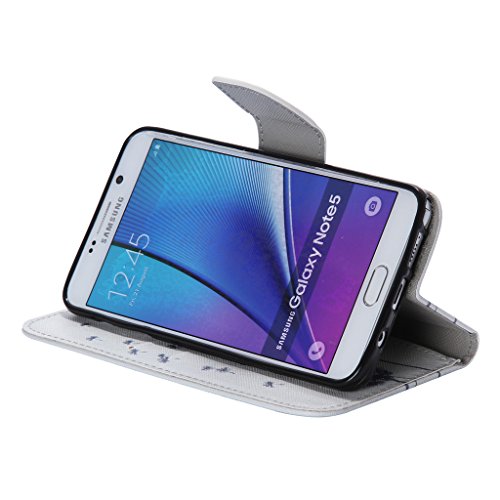 UNEXTATI Galaxy Note 5 ケース 高品質 合皮レザーケース マグネット 全面保護 手帳型 ケース カバー カードホルダー 付き スタンド 防塵 防水 Samsung Galaxy Note5ケース Case (P7 ホワイト)