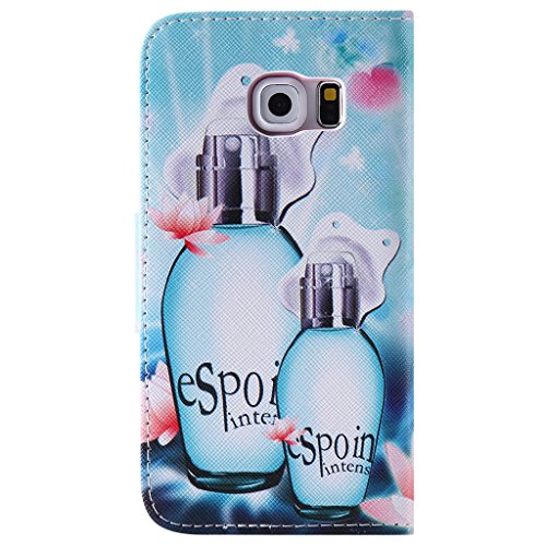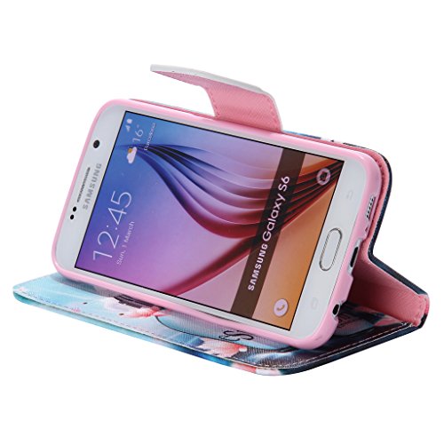 UNEXTATI Galaxy S6 Edge ケース 高級 合皮レザー 手帳型 ケース カバー カードホルダー スタンド マグネット開閉式 付き Samsung Galaxy S6 Edgeケース Case (P12 ブルー)