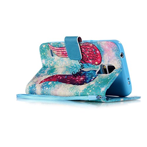 UNEXTATI Galaxy S5 ケース 手帳型ケース カバー ウォレット型ケース 高品質 PUレザー 収納 耐衝撃 全面保護 Samsung Galaxy S5ケース Case (ブルー, P4)