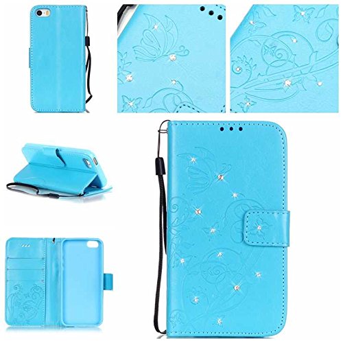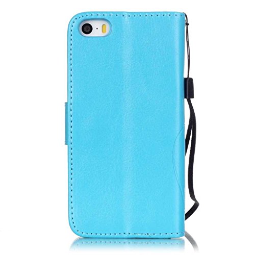 iPhone SE / iPhone 5 / 5s ケース, UNEXTATI 手帳型ケース Apple iPhone SE / iPhone 5 / 5s ケース カバー 高品質 PUレザー 手帳型 ウォレット型 財布型 液晶保護 カード収納 スタンド機能 マグネット式 ダイヤモンド (P7 ブルー)