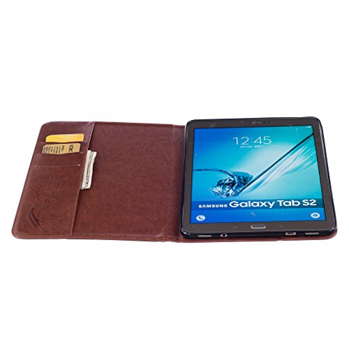 UNEXTATI Galaxy Tab S2 9.7 Inch T815 ケース 高品質 PUレザー 手帳型ケース 保護カバー カード収納 液晶保護 防塵 Samsung Galaxy Tab S2 9.7 用 Case Cover (ブラウン)