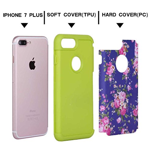 iPhone 7 Plus ケース UNEXTATI 高品質 TPU カバー ハードPC カバー ケース 液晶保護 衝撃吸収 脱着簡単 耐汚れ 耐衝撃 軽量 Apple iPhone7 Plus 用 2in1 ケース Case Cover (P5 花)