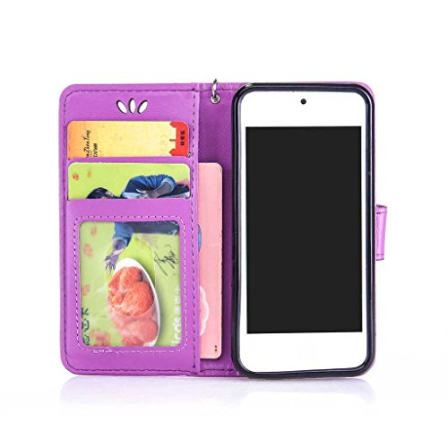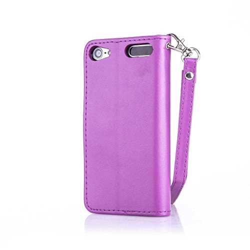 iPod Touch 第5世代 / 第6世代 ケース UNEXTATI Apple iPod Touch 第5世代 / 第6世代 手帳型ケース カバー 液晶保護 カード収納 スタンド機能 マグネット開閉式 ストラップ付き (P10 紫色)