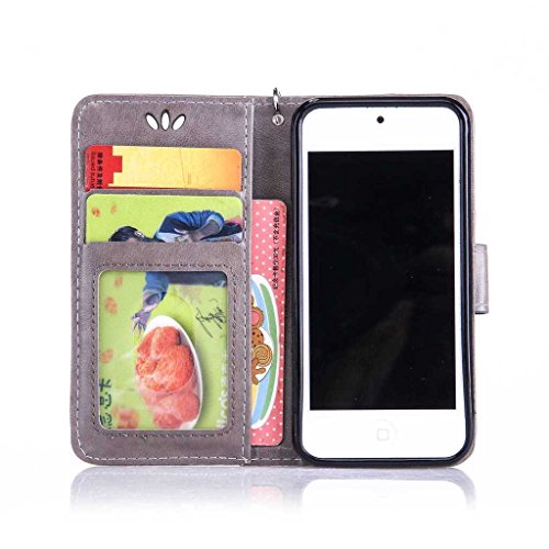 iPod Touch 第5世代 / 第6世代 ケース UNEXTATI Apple iPod Touch 第5世代 / 第6世代 手帳型ケース カバー 液晶保護 カード収納 スタンド機能 マグネット開閉式 ストラップ付き (P6 グレー)