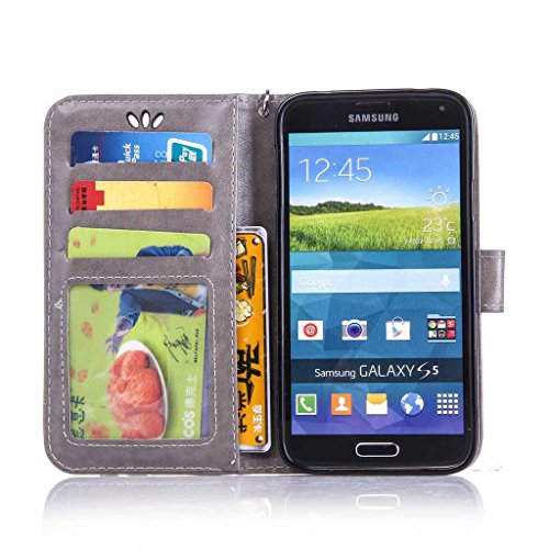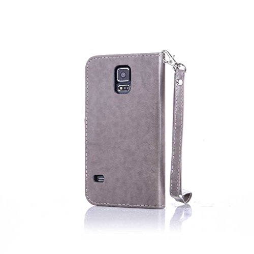 Samsung Galaxy S5 ケース UNEXTATI Samsung Galaxy S5 手帳型ケース カバー 液晶保護 カード収納 スタンド機能 マグネット開閉式 ストラップ付き (P6 グレー)