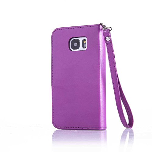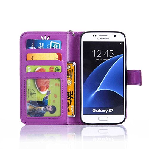 Samsung Galaxy S7 ケース UNEXTATI Samsung Galaxy S7 手帳型ケース カバー 液晶保護 カード収納 スタンド機能 マグネット開閉式 ストラップ付き (P10 紫色)