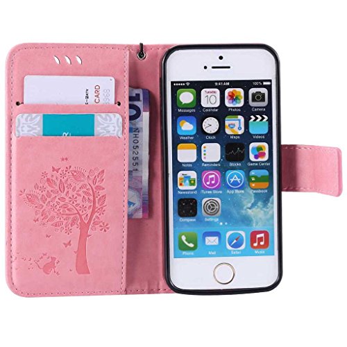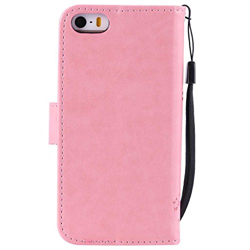 iPhone SE / iPhone 5 / 5s ケース 手帳型ケース, UNEXTATI 高級 PUレザー 保護ケース 財布型 カバー 液晶保護 カード収納 スタンド機能 マグネット開閉式 ストラップ付き Apple iPhone SE / iPhone 5 / 5s ケース 保護カバー (P3 ピンク)