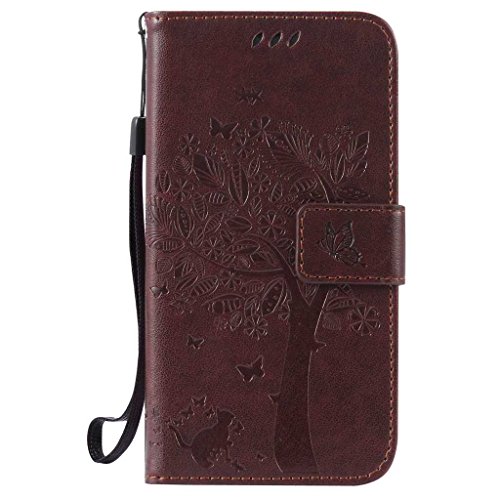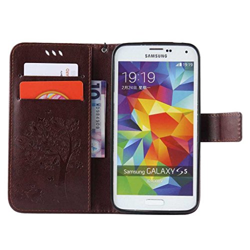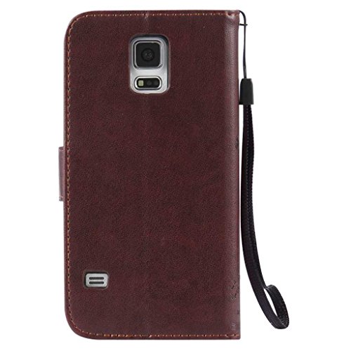 Samsung Galaxy S5 ケース 手帳型ケース, UNEXTATI 高級 PUレザー 保護ケース 財布型 カバー 液晶保護 カード収納 スタンド機能 マグネット開閉式 ストラップ付き Samsung Galaxy S5 ケース 保護カバー (P4 ブラウン)