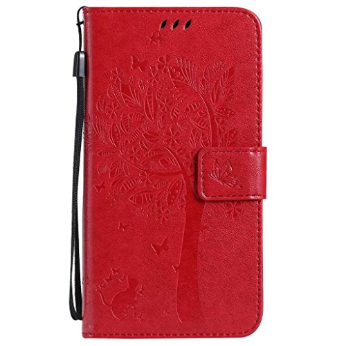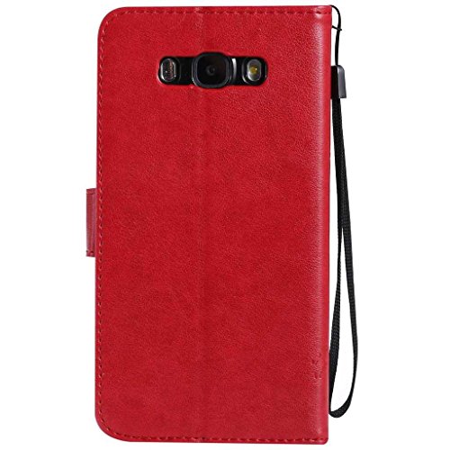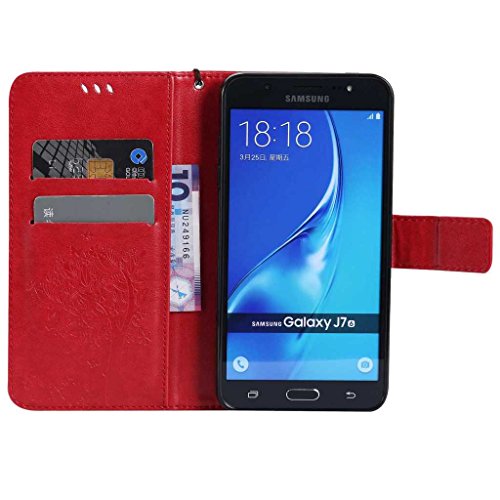 Samsung Galaxy J7 2016 ケース 手帳型ケース, UNEXTATI 高級 PUレザー 保護ケース 財布型 カバー 液晶保護 カード収納 スタンド機能 マグネット開閉式 ストラップ付き Samsung Galaxy J7 2016 ケース 保護カバー (P6 レッド)