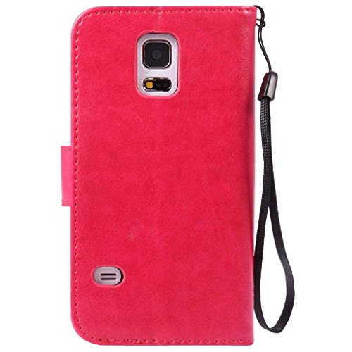 Samsung Galaxy S5 Mini ケース 手帳型ケース, UNEXTATI 高級 PUレザー 保護ケース 財布型 カバー 液晶保護 カード収納 スタンド機能 マグネット開閉式 ストラップ付き Samsung Galaxy S5 Mini ケース 保護カバー (P7 蝶)
