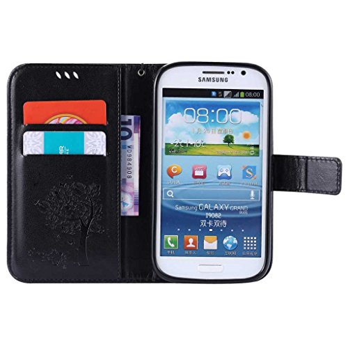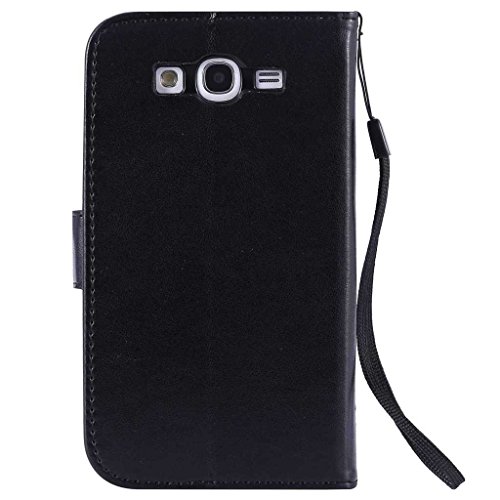 Samsung Galaxy Grand Neo I9060 ケース 手帳型ケース, UNEXTATI 高級 PUレザー 保護ケース 財布型 カバー 液晶保護 カード収納 スタンド機能 マグネット開閉式 ストラップ付き Samsung Galaxy Grand Neo I9060 ケース 保護カバー (P1 ブラック)
