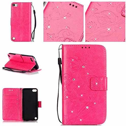 iPod Touch 第5世代 / 第6世代 ケース, UNEXTATI 手帳型ケース Apple iPod Touch 第5世代 / 第6世代 ケース カバー 高品質 PUレザー 手帳型 ウォレット型 財布型 液晶保護 カード収納 スタンド機能 マグネット式 ダイヤモンド (P3 蝶)