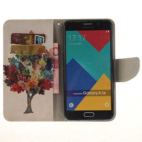 Samsung Galaxy A3 2016 ケース, UNEXTATI 手帳型ケース, Samsung Galaxy A3 2016 ケース カバー, 高品質 PUレザー 手帳型 ウォレット型 財布型 保護カバー カード収納 スタンド機能 マグネット式 (P13 木)