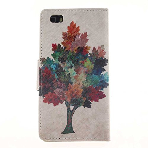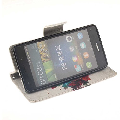 Huawei P8 Lite ケース, UNEXTATI 手帳型ケース, Huawei P8 Lite ケース カバー, 高品質 PUレザー 手帳型 ウォレット型 財布型 保護カバー カード収納 スタンド機能 マグネット式 (P13 木)