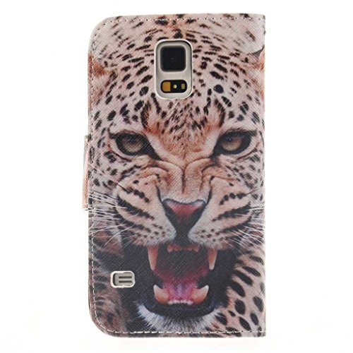 Samsung Galaxy S5 ケース, UNEXTATI 手帳型ケース, Samsung Galaxy S5 ケース カバー, 高品質 PUレザー 手帳型 ウォレット型 財布型 保護カバー カード収納 スタンド機能 マグネット式 (P14 動物)