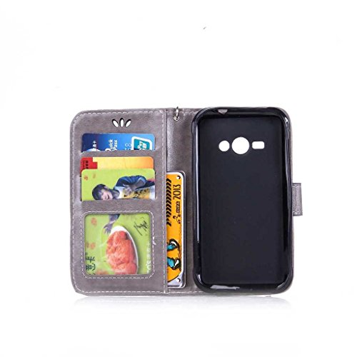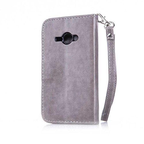 Samsung Galaxy J1 Ace ケース UNEXTATI Samsung Galaxy J1 Ace 手帳型ケース カバー 液晶保護 カード収納 スタンド機能 マグネット開閉式 ストラップ付き (P6 グレー)