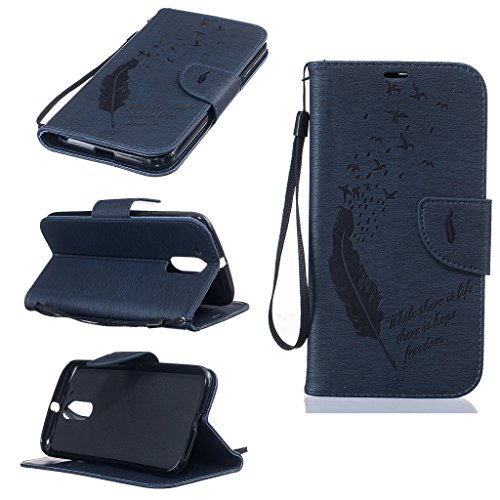 Moto G4 ケース UNEXTATI 高品質 PUレザー 手帳型 ケース 財布型 ウォレット型 衝撃吸収 保護カバー カード収納 ホルダー ストラップ付き 横開 スタンド機能 マグネット開閉式 シリコンカバー 液晶保護 落下防止 防塵 高級 合皮レザー Moto G4 用 Case Cover (P8 フェザー)