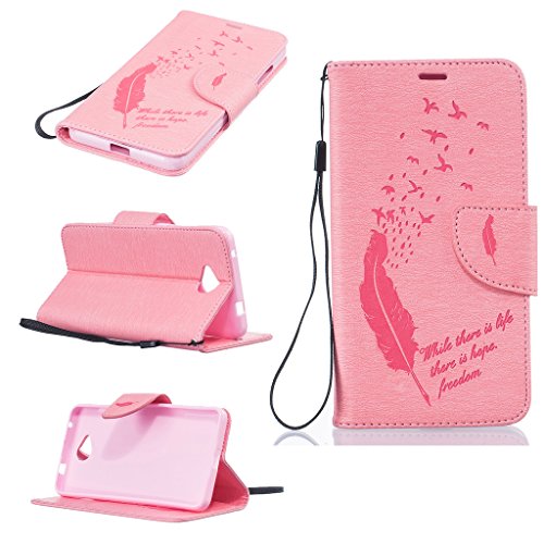 Microsoft Lumia 650 ケース UNEXTATI 高品質 PUレザー 手帳型 ケース 財布型 ウォレット型 衝撃吸収 保護カバー カード収納 ホルダー ストラップ付き 横開 スタンド機能 マグネット開閉式 シリコンカバー 液晶保護 落下防止 防塵 高級 合皮レザー Microsoft Lumia 650 用 Case Cover (P6 ピンク)