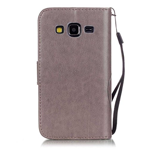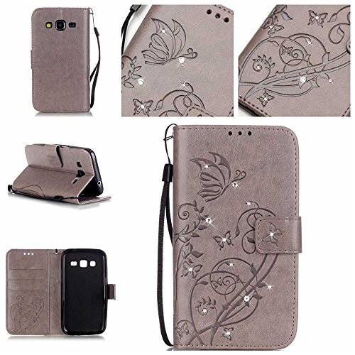 Samsung Galaxy Core Prime ケース, UNEXTATI 手帳型ケース Samsung Galaxy Core Prime ケース カバー 高品質 PUレザー 手帳型 ウォレット型 財布型 液晶保護 カード収納 スタンド機能 マグネット式 ダイヤモンド (P1 グレー)