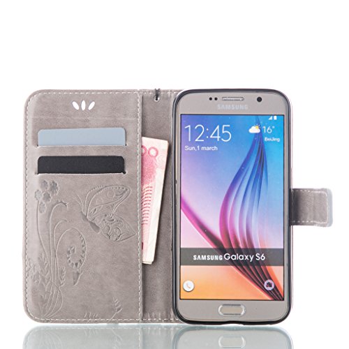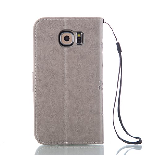 UNEXTATI Galaxy S6 ケース 手帳型 保護 ケース 高品質 PU レザー ストラップ付き カード収納ケース カバー 耐衝撃 スタンド機能 付き Samsung Galaxy S6 ケース Case (P7 グレー)