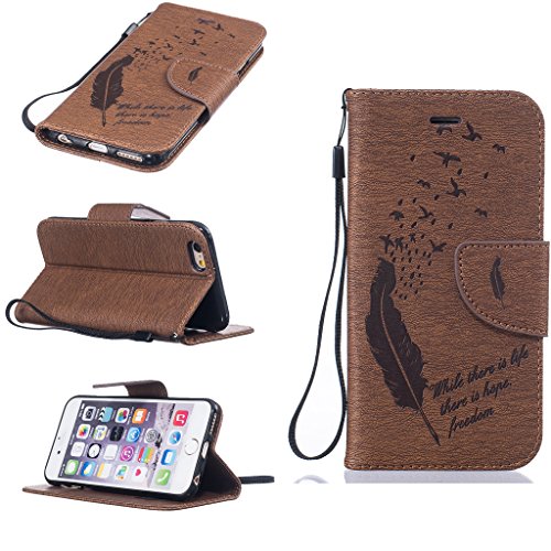 iPhone 6 / iPhone 6s ケース UNEXTATI 高品質 PUレザー 手帳型 ケース 財布型 ウォレット型 衝撃吸収 保護カバー カード収納 ホルダー ストラップ付き 横開 スタンド機能 マグネット開閉式 シリコンカバー 液晶保護 落下防止 防塵 高級 合皮レザー Apple iPhone6 / iPhone6s 用 Case Cover (P3 ブラウン)