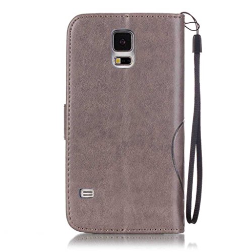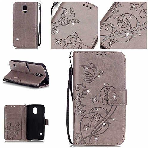Samsung Galaxy S5 Mini ケース, UNEXTATI 手帳型ケース Samsung Galaxy S5 Mini ケース カバー 高品質 PUレザー 手帳型 ウォレット型 財布型 液晶保護 カード収納 スタンド機能 マグネット式 ダイヤモンド (P1 グレー)