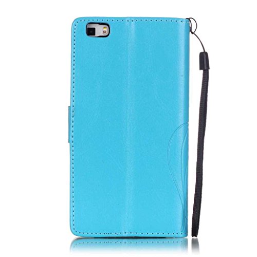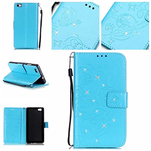 Huawei P8 Lite ケース, UNEXTATI 手帳型ケース Huawei P8 Lite ケース カバー 高品質 PUレザー 手帳型 ウォレット型 財布型 液晶保護 カード収納 スタンド機能 マグネット式 ダイヤモンド (P7 ブルー)