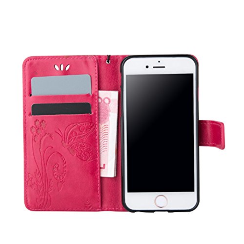 UNEXTATI iPhone 6 / iPhone 6S ケース 手帳型 保護 ケース 高品質 PU レザー ストラップ付き カード収納ケース カバー 耐衝撃 スタンド機能 付き Apple iPhone6ケース iPhone6sケース Case (P9 ピンク)