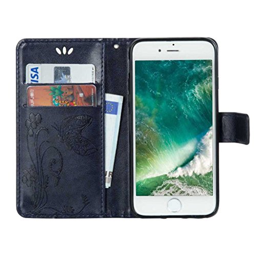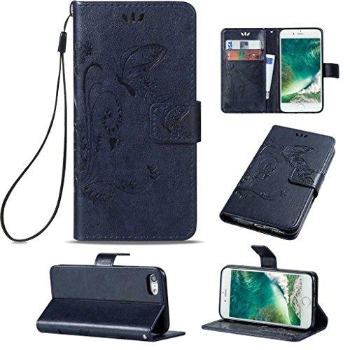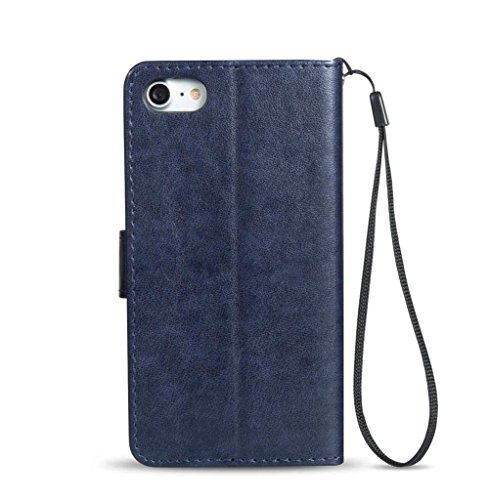 UNEXTATI iPhone 7 ケース 手帳型 保護 ケース 高品質 PU レザー ストラップ付き カード収納ケース カバー 耐衝撃 スタンド機能 付き Apple iPhone 7 ケース Case (P10 ブルー)