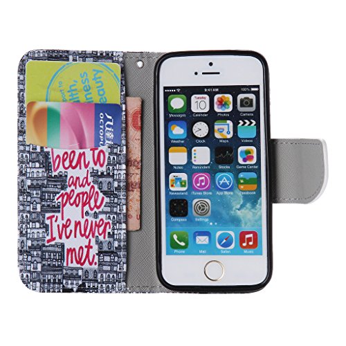 UNEXTATI iPhone 5 / iPhone 5s ケース 手帳型ケース 高品質 PUレザー カードホルダー 耐衝撃 全面保護 防塵 スタンド機能 付き Apple iPhone 5ケース iPhone 5sケース Case (P14 マルチカラー)