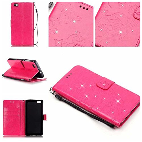 Huawei P8 Lite ケース, UNEXTATI 手帳型ケース Huawei P8 Lite ケース カバー 高品質 PUレザー 手帳型 ウォレット型 財布型 液晶保護 カード収納 スタンド機能 マグネット式 ダイヤモンド (P3 蝶)
