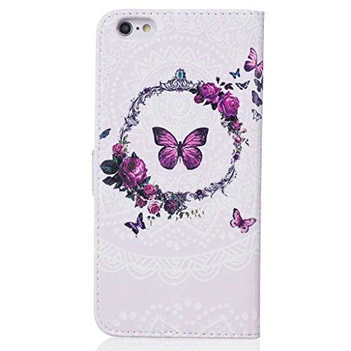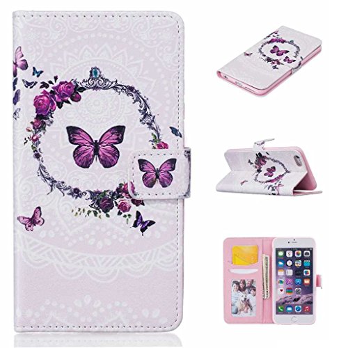 iPhone 6 Plus / iPhone 6S Plus ケース 手帳型ケース, UNEXTATI 高品質PUレザー 財布型ケース 保護カバー カード収納 スタンド機能 マグネット開閉式 Apple iPhone 6 Plus / iPhone 6S Plus ケース 防塵 落下防止 保護カバー Case (P5 蝶)