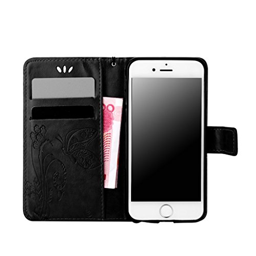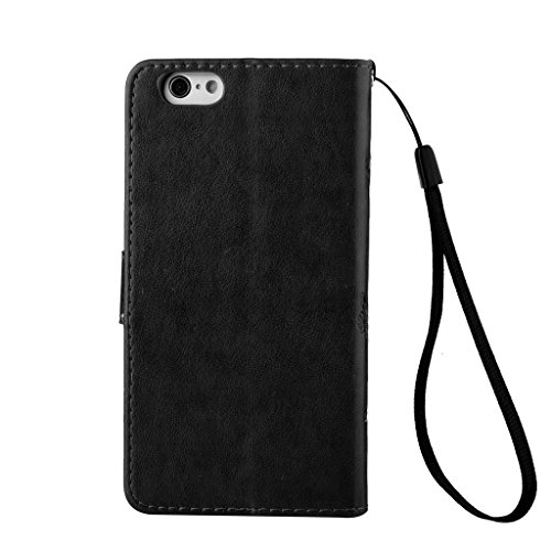 UNEXTATI iPhone SE ケース 手帳型 保護 ケース 高品質 PU レザー ストラップ付き カード収納ケース カバー 耐衝撃 スタンド機能 付き Apple iPhone SE ケース Case (P2 ブラック)