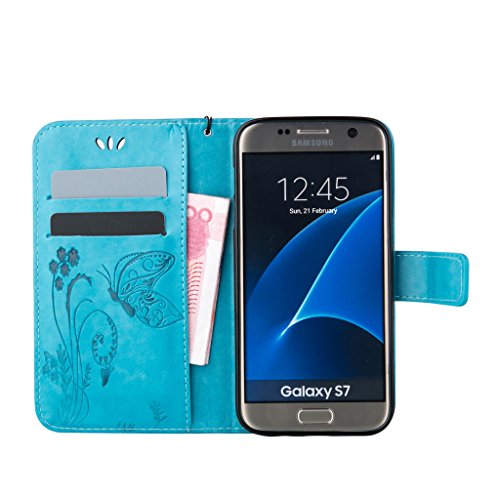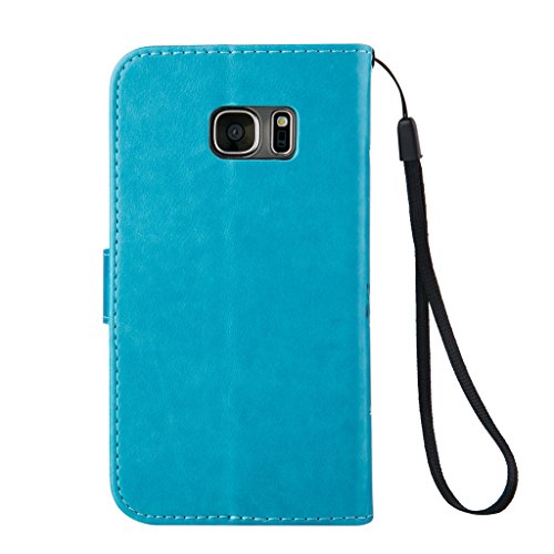UNEXTATI Galaxy S7 ケース 手帳型 保護 ケース 高品質 PU レザー ストラップ付き カード収納ケース カバー 耐衝撃 スタンド機能 付き Samsung Galaxy S7 ケース Case (P4 ブルー)