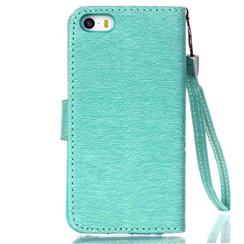 UNEXTATI iPhone 5 / iPhone 5s ケース 高品質 PUレザー 手帳型ケース 衝撃吸収 カバー カード収納 全面保護 Apple iPhone5 / iPhone5s 用 Case Cover (グリーン)