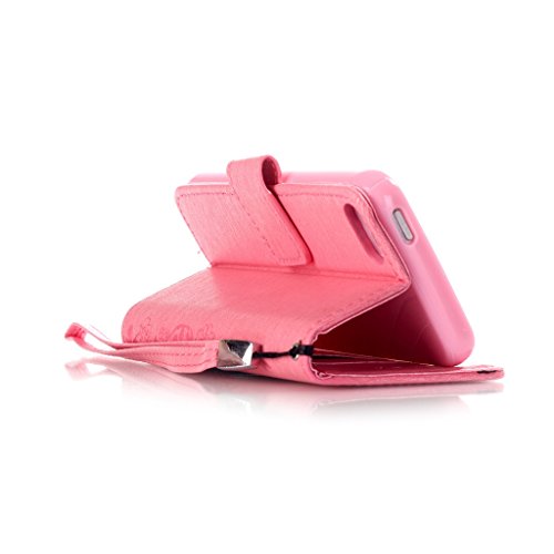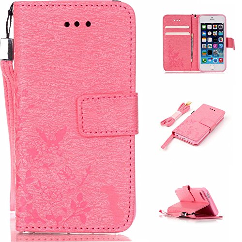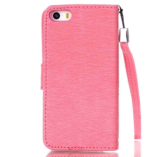 UNEXTATI iPhone SE ケース 高品質 PUレザー 手帳型ケース 衝撃吸収 カバー カード収納 全面保護 Apple iPhoneSE 用 Case Cover (ピンク #2)