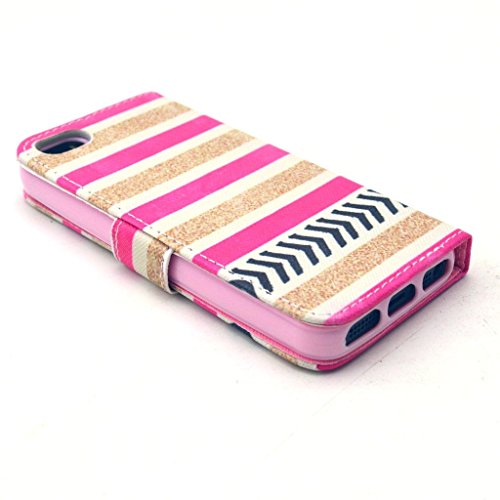UNEXTATI iPhone 5C 手帳型 ケース 高品質 PUレザー カード収納ケース カバー 耐衝撃 全面保護 防塵 スタンド機能 Apple iPhone5cケース Case (ピンク, P8)