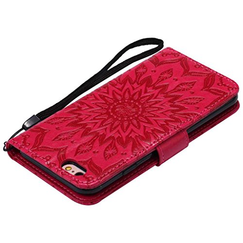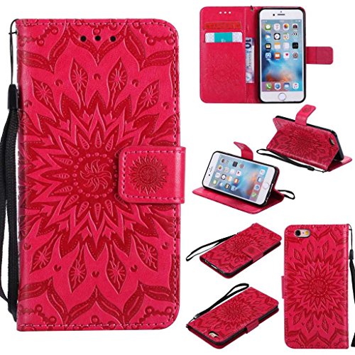 iPhone 6 6s ケース 高品質 PU手帳型 耐摩擦 全面保護ケース カード収納 スタンド機能 財布型 アイフォン 6/6s用 ケース (P5 レッド)