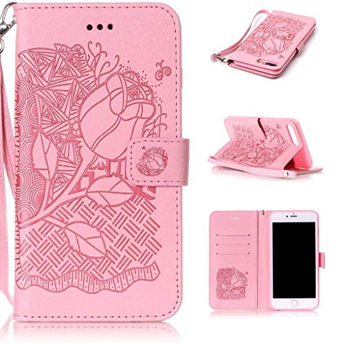 iPhone7 Plus ケース UNEXTATI 落下防止 耐衝撃 液晶保護 手帳型 保護カバー カード収納ホルダー付き スタンド機能 高品質 手触り良い iPhone 7 Plus 対応 ケース (P16 ピンク)