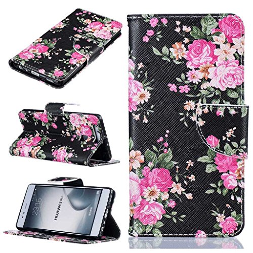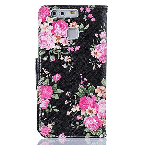 Huawei P9 ケース UNEXTATI 手帳型 軽量 全面保護カバー 横置きスタンド機能付き 耐衝撃 マグネット式 財布ケース 高品質 PUレザー Huawei P9 ケース (P1 ブラック)