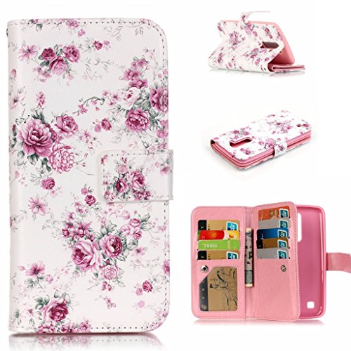 UNEXTATI LG K10 ケース 高品質 PUレザー 手帳型ケース 保護カバー カード収納 液晶保護 防塵 LG K10 用 Case Cover (P10 ピンク)