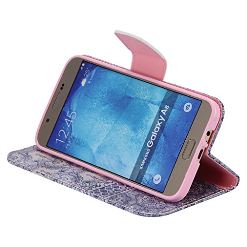 UNEXTATI Galaxy A8 ケース 高級 合皮レザー 手帳型 ケース カバー カードホルダー スタンド マグネット開閉式 付き Samsung Galaxy A8 ケース Case (P10 ブルー)