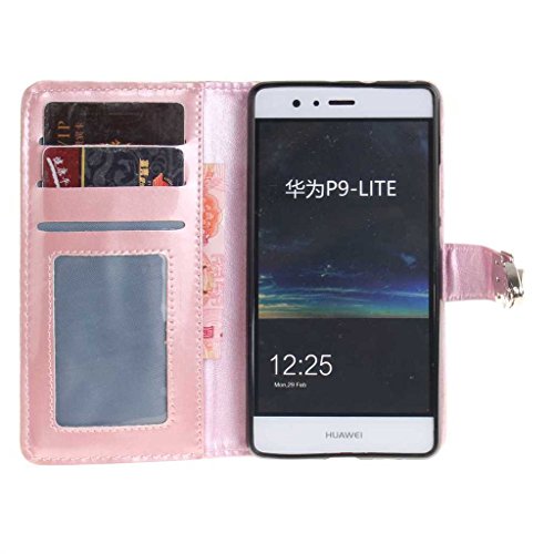 Huawei P9 Lite ケース UNEXTATI 手帳型ケース 液晶保護 カバー カード収納 スタンド機能 付き Huawei P9 Lite 用 高品質 PUレザー ケース Case Cover (P1 ピンク)