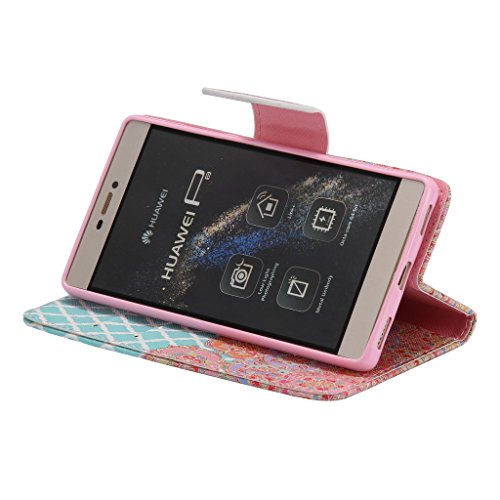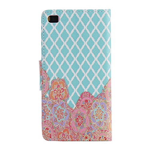 UNEXTATI Huawei P8 ケース 高品質 合皮レザーケース マグネット 全面保護 手帳型 ケース カバー カードホルダー 付き スタンド 防塵 防水 Huawei P8ケース Case (P4 ブルー)