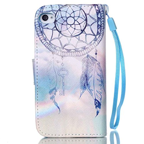 UNEXTATI iPhone 4 / 4s ケース 手帳型ケース カバー ウォレット型ケース 高品質 PUレザー 収納 耐衝撃 全面保護 Apple iPhone4ケース iPhone4s ケース Case (ブルー, P8)