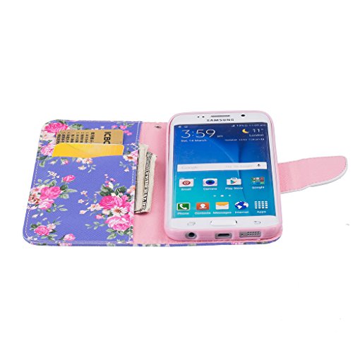 Samsung Galaxy S6 Edge ケース カバー UNEXTATI 高品質 PUレザー 手帳型 ケース 財布型 ウォレット型 衝撃吸収 保護カバー カード収納 ホルダー 横開 スタンド機能 マグネット開閉式 シリコンカバー 液晶保護 落下防止 防塵 高級 合皮レザー Samsung Galaxy S6 Edge 用 Case Cover (P6 マルチカラー)